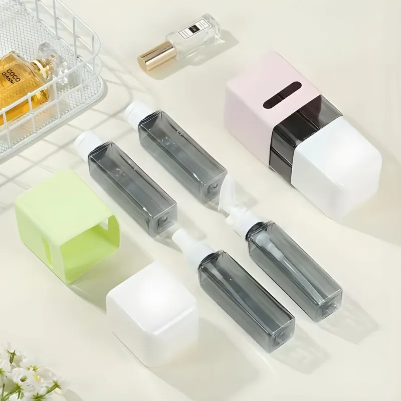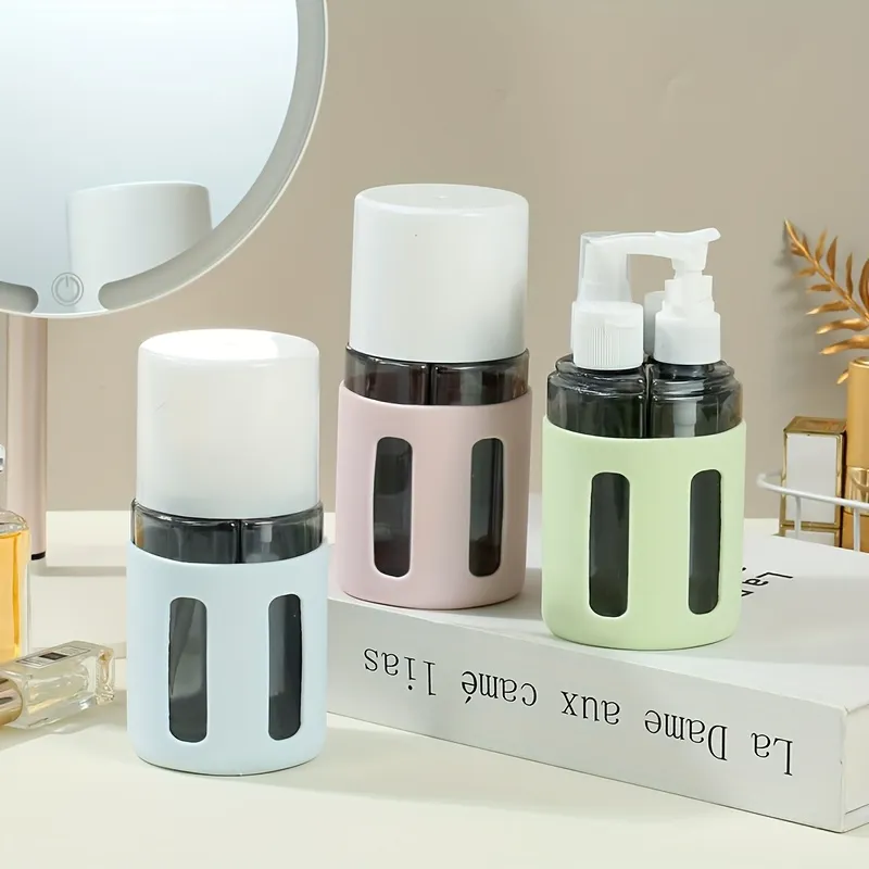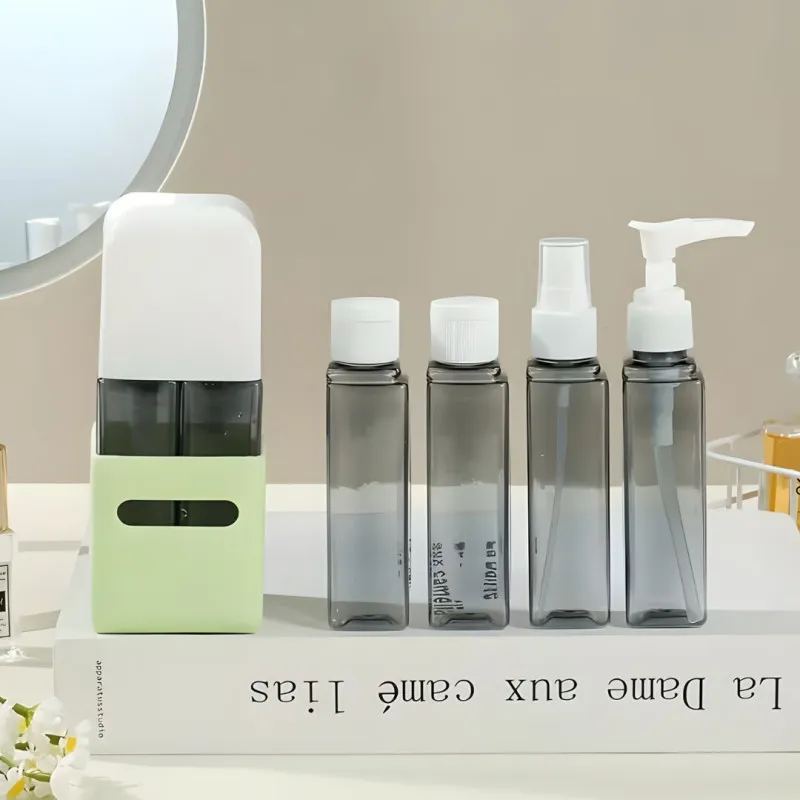 • 4-in-1 travel kit — includes refillable bottles for shampoo, shower gel, hand wash, and lotion.