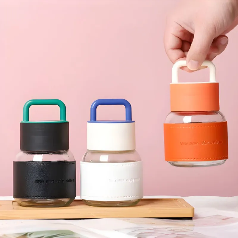 Borosilicate Glass Water Bottle Silicone Sleeve & Handle Lid