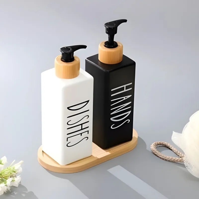 Elegant ceramic soap dispenser for hand wash and dishwashing liquid.