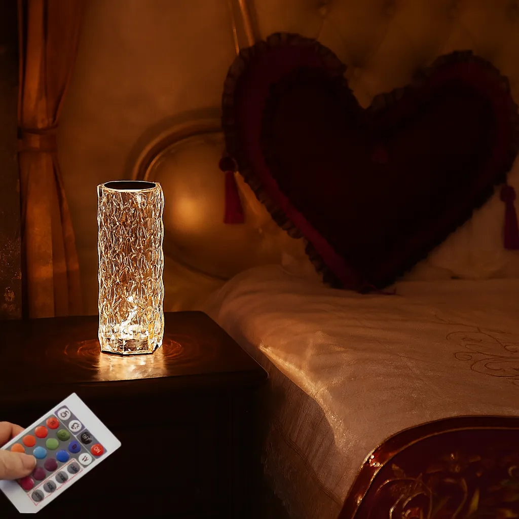 Add elegance and ambiance to your space with this Crystal Diamond LED Touch Lamp. Featuring a unique diamond-cut crystal design, this lamp casts stunning light patterns across any room. With 16+ color options, remote control, and touch functionality, it’s perfect for creating a cozy mood in the bedroom, setting the tone for a romantic dinner, or enhancing your living room décor. USB rechargeable and portable, it blends luxury with practicality.