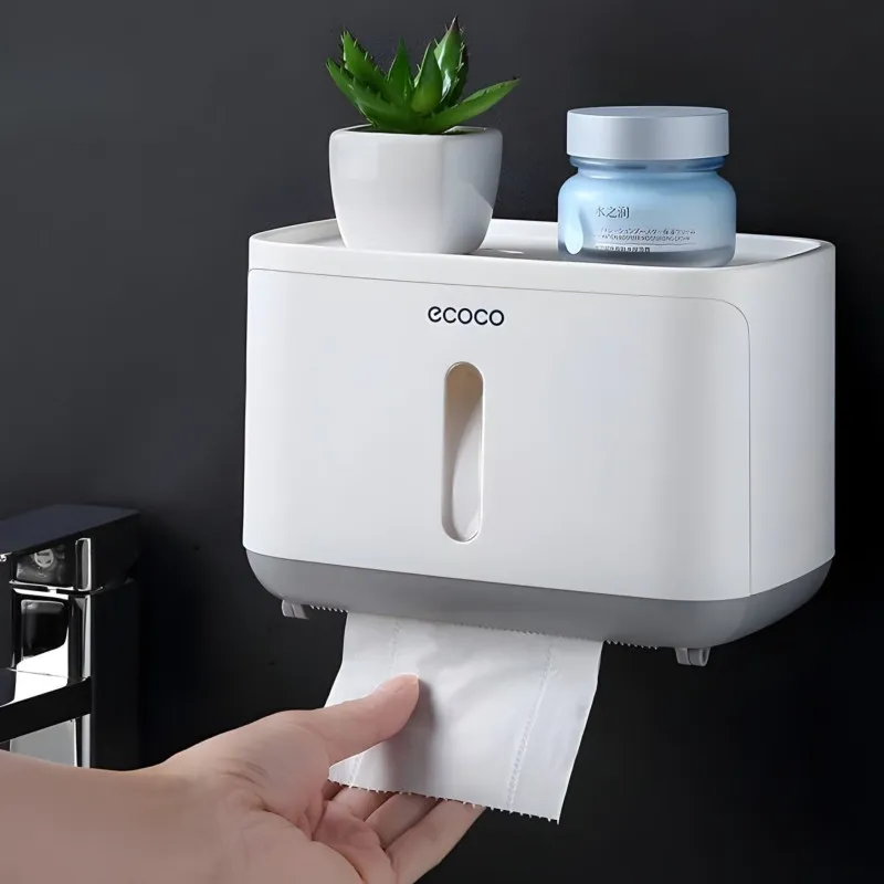 ECOCO wall-mounted tissue box dispenser for paper towels and tissues.