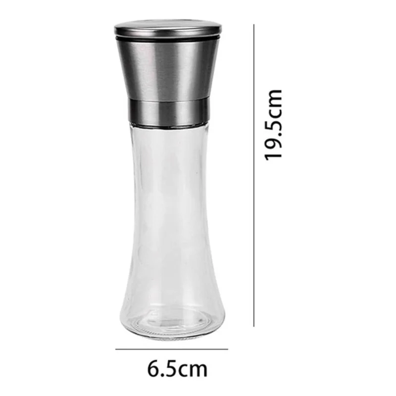 Dual-purpose salt and pepper mill with stylish glass body and ceramic grinding mechanism.