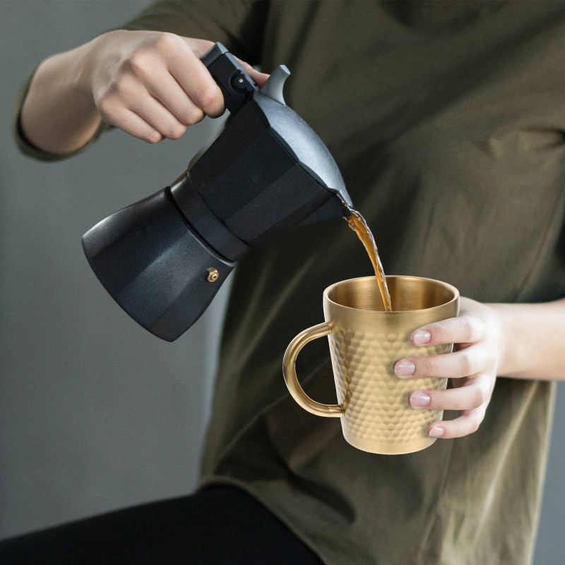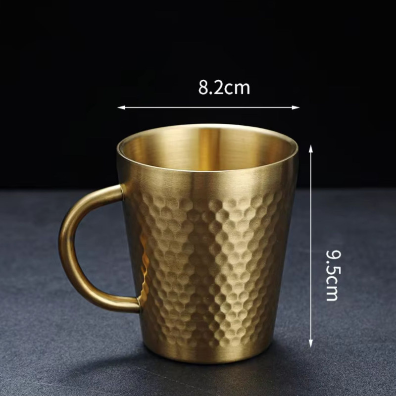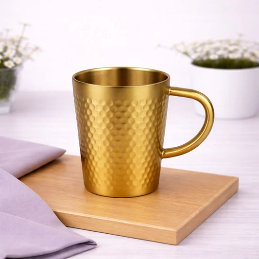 • Elegant golden hammered design stainless steel cup, ideal for tea and coffee