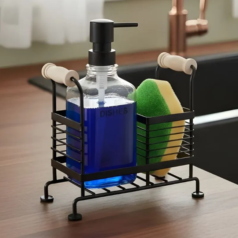 Limon Glass Liquid Dispensers Set With Stand and Sponge