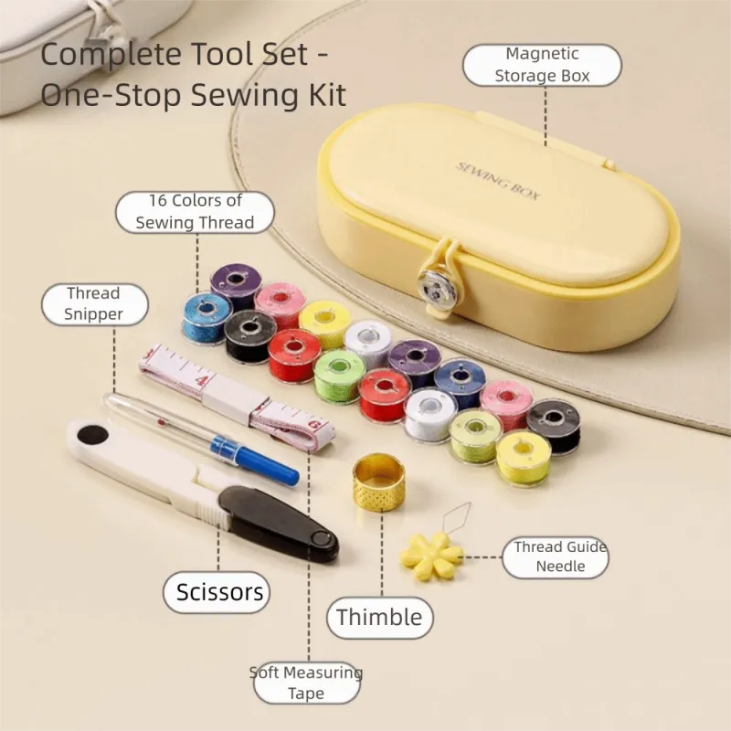 • Complete sewing kit — includes essential tools for quick repairs and stitching.