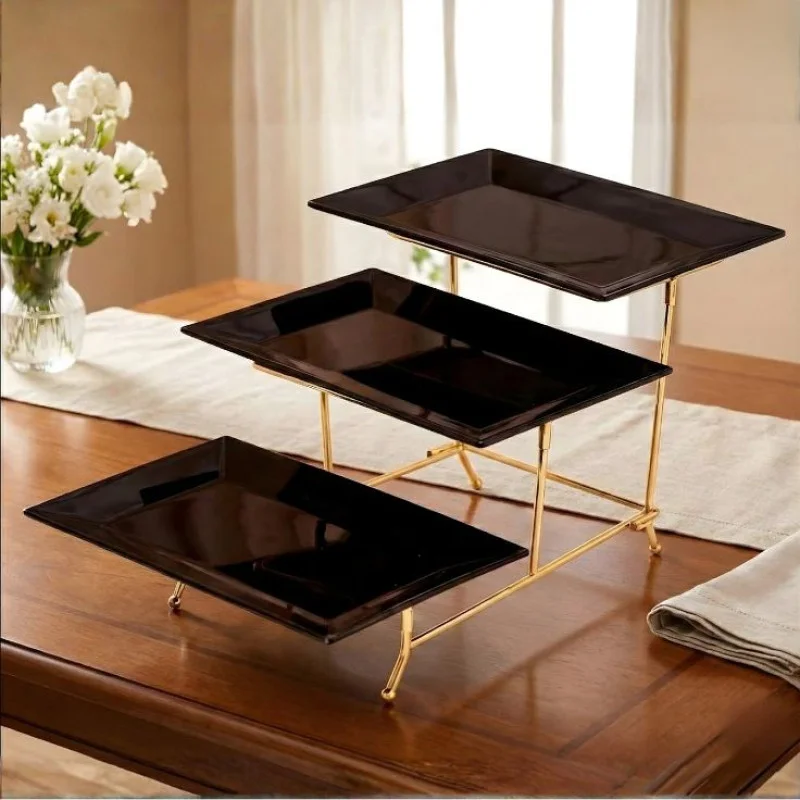 • Elegant black platters with golden stand enhance premium table presentation