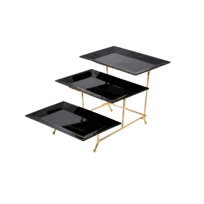 Melamine 3 Black Small Platter With Golden Stand