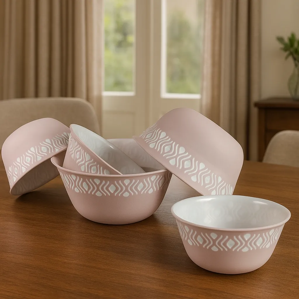 Serve in style with this Pink Printed Bowl Set, designed to bring both functionality and elegance to your dining experience. The soft pastel pink color paired with the delicate white printed design makes these bowls perfect for everyday meals as well as special occasions.