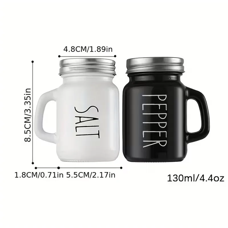 - These cute salt and pepper shakers are the perfect size at 3.42″ tall and 2″ wide(without handle), which can hold approximately 4 ounces for frequent use with less refills.