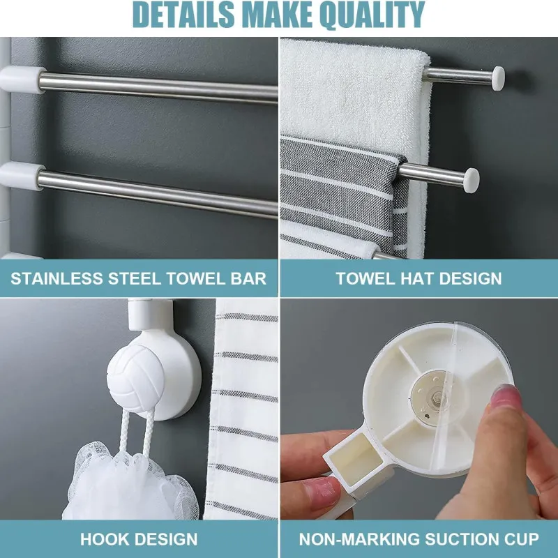 Suction Cup 4 Bar Rotating Bathroom Towel Rack