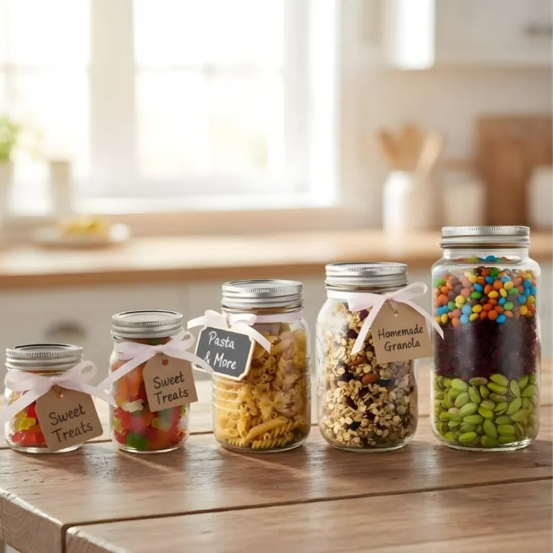 Elegant glass jars perfect for storing dry foods snacks and ingredients